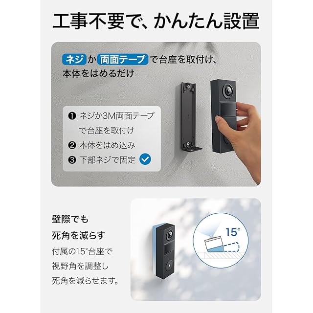 商品名:Tapo(タポ) スマートドアホン ドアホン 工事不要 インターホン ワイヤレス カメラ付きインターホン 2K 3MP 300万画素 IP54 防水防塵 双方向通話 ドアホンコール 人物検知 メーカー1年 TP-Link Tapo D205