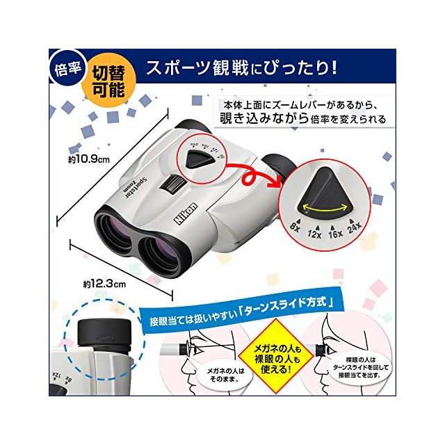 商品名:Nikon ズーム双眼鏡 スポーツスターズーム 8-24x25 ポロプリズム式 8-24倍25口径 ホワイト Sportstar Zoom SPZ8-24X25WH ライブ コンサート スポーツ観戦