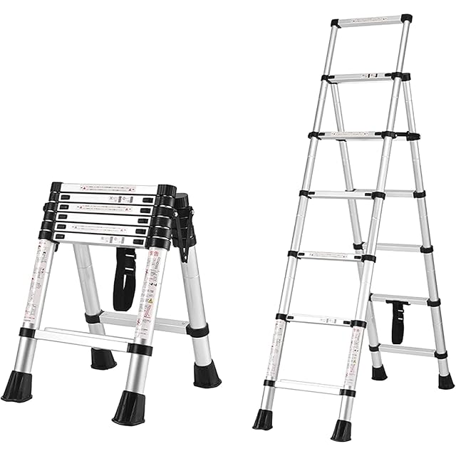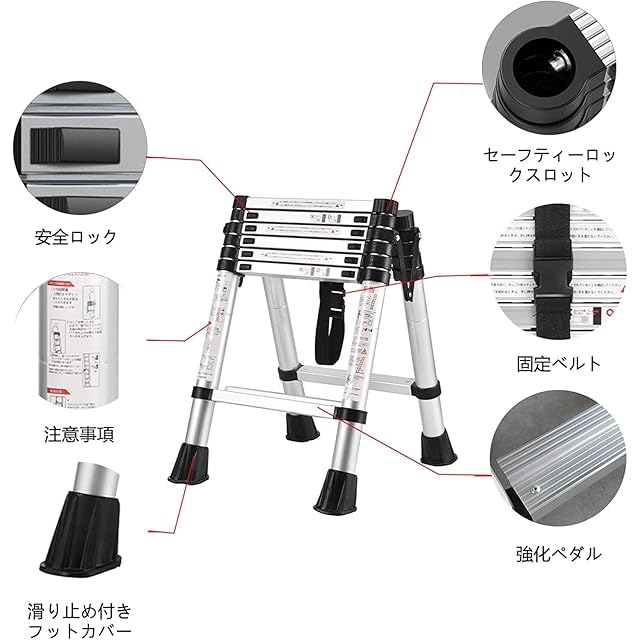 商品名:BOWEITI伸縮はしご 脚立 最長2.0m伸縮梯子安全ロック付き 耐荷重150kg 持ち運びやすい 折り畳み 伸縮アルミはしご 室内室外 屋根 倉庫 掃除 作業(1.7m+2.0m)