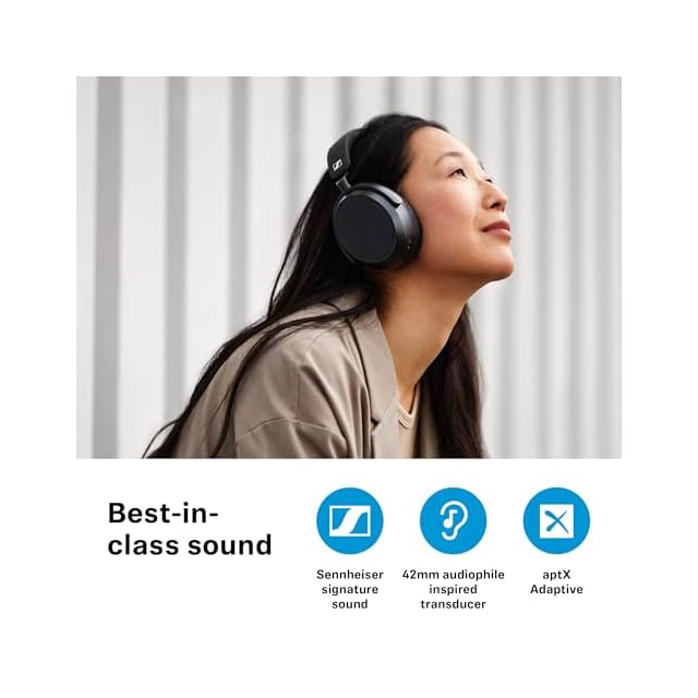 ゼンハイザーの類まれなるオーディオ技術で開発した42mmトランスデューサーは歪みを最小限にし、低音から繊細な高音、細部まで豊かに描き、全ての周波数帯域を忠実に再現。鮮やかで躍動感のある美しいサウンドを届けます。