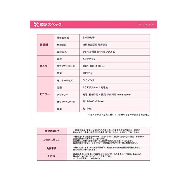 [本体サイズ] モニター:寸法/約12x8.3x4.3cm、重量/約176gカメラ:寸法/約8.5x10x11cm、重量/約223g(突起部は除きます)