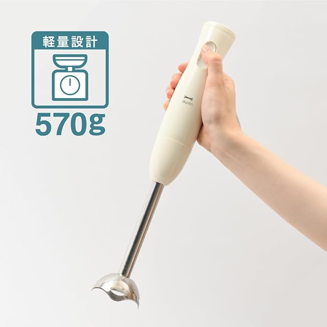 面倒な下ごしらえも簡単&時短!約570gと軽量な本体で作業しやすく、氷も砕けるパワフルさ!アタッチメントを取り外して後片付けも楽々!連続使用可能時間最大3分で、毎日の食事からお菓子作りまで幅広く活躍!