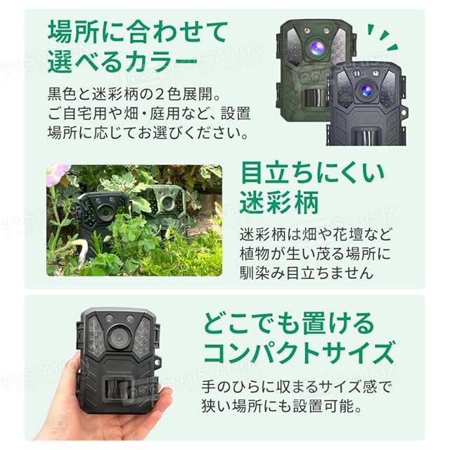商品名:SecuSTATION 国内メーカー 小型 トレイルカメラ 屋外 熊 害獣 ソーラー 対応 1080p対応 赤外線 夜間撮影 人感センサー 電池式 防犯 動物監視カメラ 定点カメラ マイク 内蔵 microSDカード 32GB付属 防犯設備士推薦 どこでもCAMミニ SC-ML63 黒