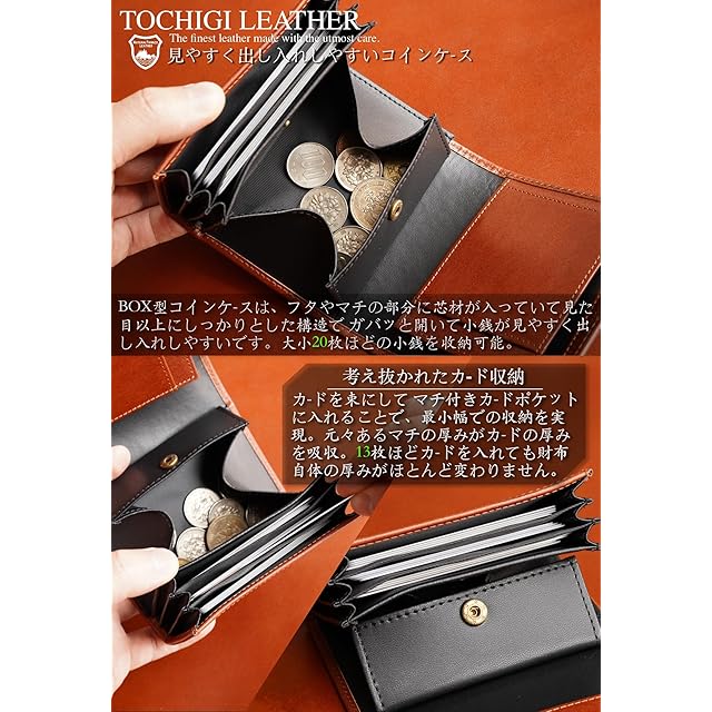 商品名:二つ折り財布 メンズ 2つ折り 栃木レザー 箱型の小銭入れ ミニ財布 コンパクト 小さい財布 二つ折り 箱状です 牛革 大容量 L字 レディース Vono Aniline (Brown 栃木レザー)