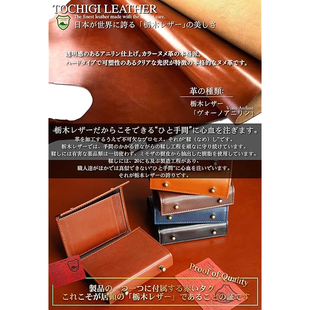 【品質、使用とメンテナンス】本製品には、日本最高峰の枥木皮革工場が授与した特別な紙で作られた赤色の防偽カードが付属しています。各カードにはユニークなコードが記載されており、重複することはありません。天然牛皮は人間の皮膚に似た特性を持っています。柔らかくて吸水性があります。表面にはいかなる化学皮膜もない。特に鋭いものを使って皮革を破壊しないでください。人体の皮膚の分泌する油脂は最も良い皮革の保養剤で、使うのはもっと長くて、皮革はますます光沢があります。