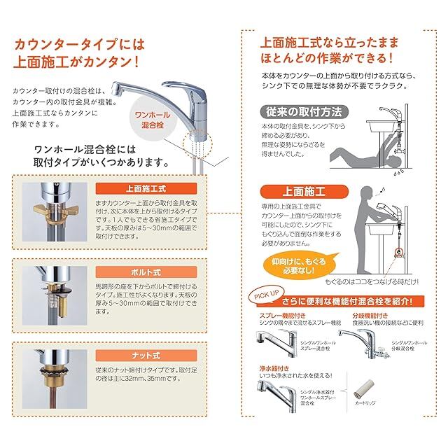 SANEI(サンエイ) キッチン用 シングルワンホール混合栓 スプレー式 上面施工 K87120TJV-13