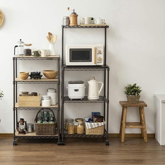 商品名:アイリスオーヤマ カラーラック メタルラック レンジ台 4段 キャスター付き ブラウン 防サビ加工 幅55×奥行35×高さ139cm ポール径19mm キッチンラック スチールラック サビに強い CMR-55134