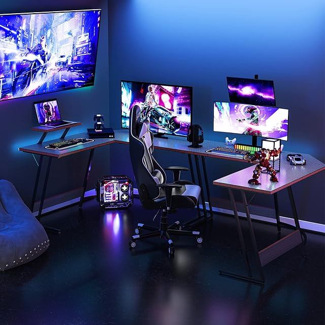 Victone ゲーミングデスク L字型デスク「メーカー2年」 幅130cm*130cm*74cm 机 PCですく パソコンですく ゲームデスク 組み立て簡単 安定性 一人暮らし L字 コーナー 作業机 取外し可能なモニター台付き 省スペース おしゃれ ブラック (VT-LBK)