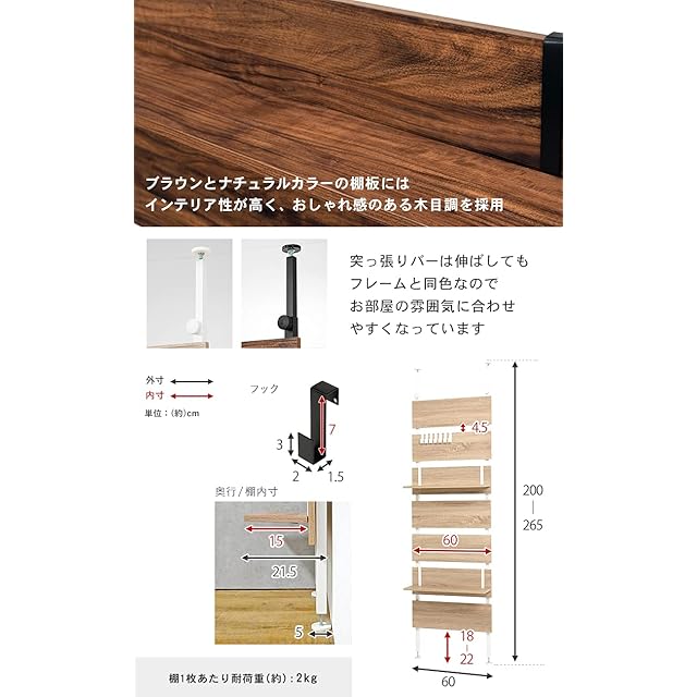 【本体サイズ】:(約)幅60×奥行21.5×高さ200~265cm
