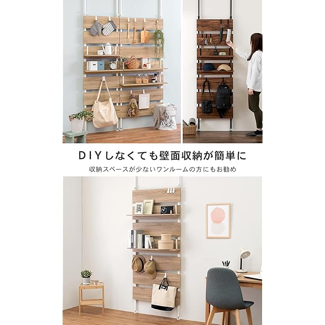 商品名:萩原(Hagihara) 突っ張り ラック つっぱり 棚 壁面収納 ウォールラック 【DIY・穴あけ・工事が不要】簡単取付 段差対応 木目調 幅60 スリム ブラウン KTR-3147BB