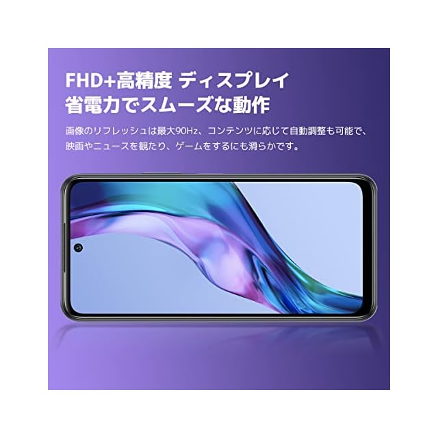 【6.5インチフルHD+ディスプレイ】画面のリフレッシュレートは最大90 Hz、コンテンツに応じて自動調整も可能です。アイケア機能対応、読書モードの設定により、画面のブルーライトを低減し、長時間使用による目の疲労感を軽減。画面の光をより正確に認識し、画面の明るさを調節します。