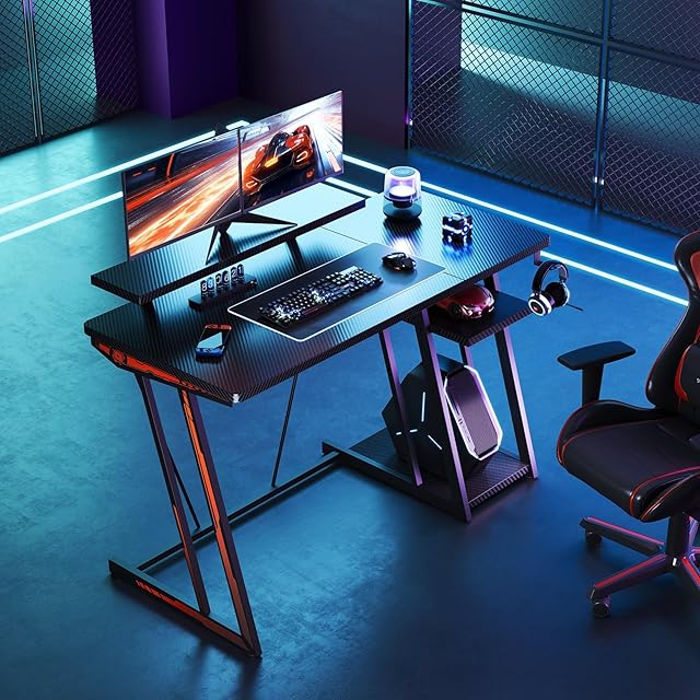 商品名:YeTom 大型ゲーミングデスク 120cm 拡張収納棚 マルチモニター3台設置 カーボンファイバー天板 ストリーミング特化ゲームデスク ブラック