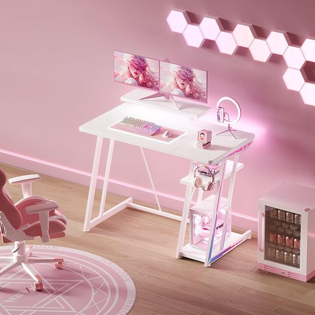 YeTom ゲーミングデスク ゲーミング テーブル ゲームデスク 幅100cm 収納ラック2段付き 台下区分収納対応 机 pcデスク ゲーミングローデスク パソコンデスク 白い