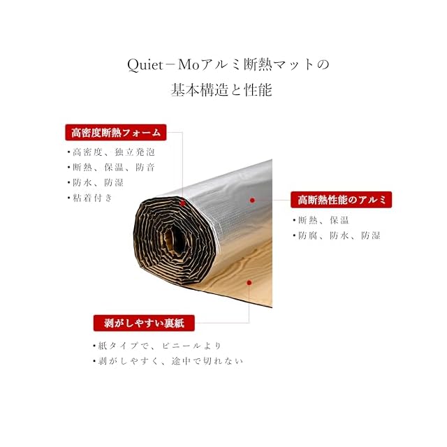 商品名:Quiet-Mo 断熱シート デッドニング 100cmx3m (厚さ6.5mm 1枚) 国内難燃試験済 断熱マット車 断熱材 デッドニング