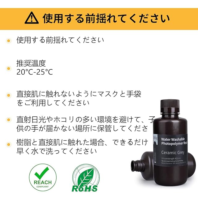 【幅広い用途】優れた性能をを持っているレジンは、玩具、家庭用および園芸用具または宝石など高精度プリントに適用し、ほとんどのDLP / LCDまたはSLA 3Dプリンターに適しています。