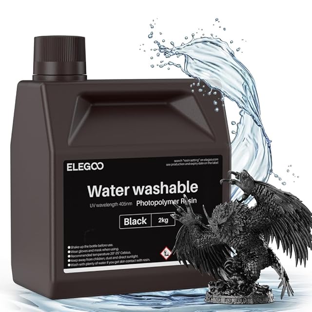 ELEGOO 水洗いレジン 光造形3Dプリンター用 UVレジン 405nm 水洗い樹脂 2000g 光硬化可能樹脂 LCD 3Dプリンター向け(ブラック)