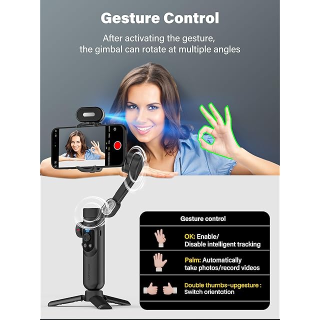 スマートフォンAIトラッカー用ジンバルスタビライザー、OLEDディスプレイ/内蔵ライト付き3軸ジンバル、iPhone&Android用スタビライザー、AOCHUAN X ProグレーAIバージョン。 マグネティックAIビジョンセンサーアシスタント。マグネティックAIビジョンセンサーアシスタントは、アプリやBluetoothアプリに接続することなくフェイストラッキングを使用することができ、さまざまな状況で写真を撮る際にクリエイティブになることができます。簡単なジェスチャーでAIセンサーが作動し、あらゆる表情を捉えて記録します。
