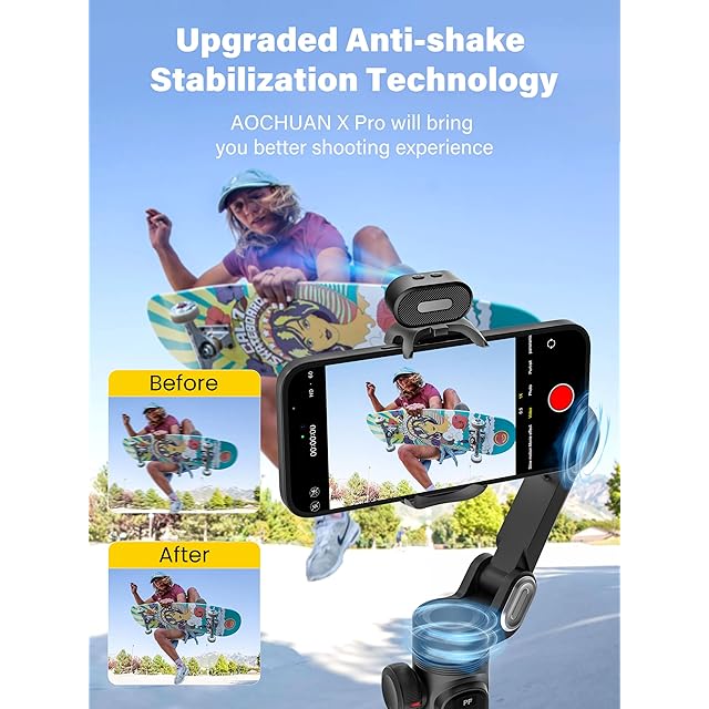 AOCHUAN スマートフォンジンバルスタビライザー、iPhone&Android用3軸スタビライザー、AIトラッキングセンサー(アプリ不要)、OLEDスクリーン/内蔵ライト付き電話ジンバル、X Pro AIバージョン