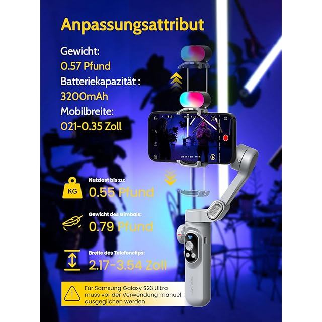 AOCHUAN SMART X PROスマホジンバル折りたたみ式手持スタビライザー ズームボタンOLED画面LEDライト調光可能AndroidスマホとiPhone 15/14/13/12/11 Pro/Maxと互換270°ロールインセプションモード、フェイストラッキング モーションタイムラプス 日本語取說付き (SmartXProグレーRGBライトセット)