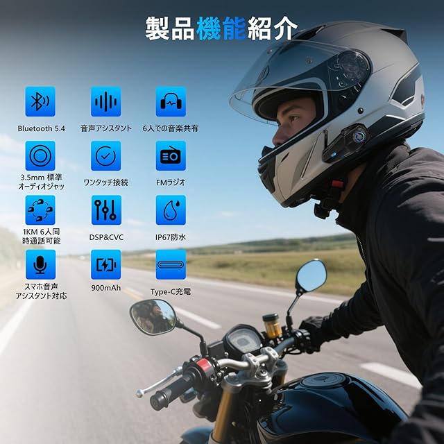 商品名:2025 All NEW TNICER バイク インカム T2インカム Bluetooth5.4 インカムバイクデ 用通信機器 6人 同時通話 ワンクリックで自動ペアリング 距離1kM 自動通信回復 3色交換デコレーション 3.5mmカスタムスピーカー 他社製 との互換接続が可能 6人での音楽共有をサポート FMラジオ IP67 付属品完備 日本語音声案内 説明書
