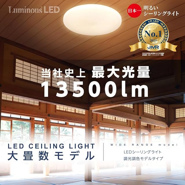 【日本一明るいシーリングライト】 ドウシシャ LEDシーリングライト 20畳 調光11段階 調色11段階 常夜灯 防犯対策 おやすみタイマー 13500lm LuminousLED