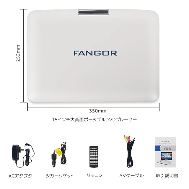商品名:ポータブルDVDプレーヤー 15.5型 FANGOR 車載携帯式DVD 大容量バッテリー内蔵 液晶 画面 14.1インチ 270度回転 3電源 CPRM対応 リージョンフリー 後部座席 3年 日本語取扱説明書付き ホワイト
