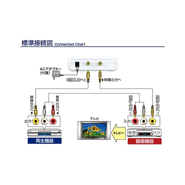 映像信号:NTSC(480i)。映像入力 RCAピン端子× 1系統。映像出力 RCAピン端子× 1系統。電源入力端子 ACアダプター用ジャック