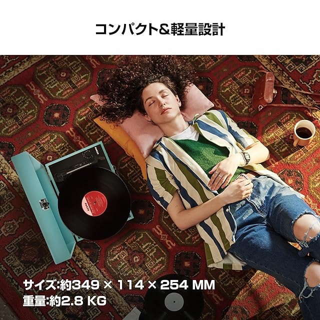 商品名:ION Audio ポータブルレコードプレーヤー スーツケース型 スピーカー内蔵持ち運び 電池でも稼働 Vinyl Transport 水色