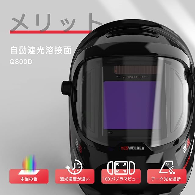 商品名:YESWELDER 溶接面 自動遮光 側面も見える広視野 4アークセンサー 遮光速度:1/30000秒 遮光度4/5-9/9-13 本当の色を映す TIG MIG ARC溶接 研磨 プラズマ切断に対応
