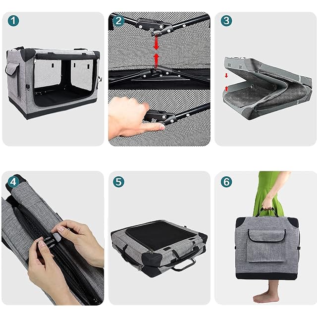 このペットケージは600Dオックスフォードと鉄フレーム構造で作られています。<br> 布カバーは完‘全に取り外して洗濯機で洗うことができます。<br> 旅行用の犬用クレートは無臭で安‘全で、ペットの健康を守ることができます。<br> ペットが出産する必要がある場合は、ペットをペットケージに入れて、ペットや新生児に静かで快適な環境を与えることができます。<br> *ご注意:ペットがそのサイズに合うペットクレートを使用できるように、購入する前に必ずペットのサイズを測定してください。<br> 4面メッシュ出入口<br> ロック付きチャックとハンドル付き<br> 補強クッション&飛び出し防止リード<br> ①このペットケージの上面、右側、前面、背面には通気性のある黒いメッシュ生地が使用されており、メッシュ生地は耐久性が高く、ペットに傷が付きにくいです。<br> ②ジッパーを簡単に開けてネットクロスを巻き上げることができるので、ペットの出入りが便利です。<br> ハンドル&ロック付きジッパー<br> ③ペットケージを保管または展開するときは、ハンドルを使用して運ぶことができます。<br> ④ドッグケージは、猫や犬が開けないように滑り止めのロック付きジッパーを使用しています。<br> 補強クッション&飛び出し防止リード<br> ⑤下部のクッションには、脚のストレスを軽減するためのスポンジが含まれています。 長期間使用しても大丈夫です、関節炎を防ぎます。<br> ⑥ペットケージの内側には安‘全ロックが付いており、ペットの逃げを防ぐことができます。<br> 10秒で組み立てと折り畳み<br> 洗いやすい<br> より軽く、より小さく<br> 10秒で組み立てと折り畳み<br> 図に示すように、工具不要で組み立てと折り畳みには4つのロックを押すだけで、完了までに10秒しかかかりません。<br> カバーは取り外し可能で洗濯も楽です、フレームは中性洗剤や消毒剤で拭くだけでOKです。<br> 市販されている他のモデルよりも軽量で、折りたたんだ後の体積は30%以上小さくなっています。<br> 屋内用<br> 屋外用<br> 車内で使用<br> 屋内用<br> 来客の時にペットケージやサークルとして使えます。 またはペットハウスとして使用されます。<br> ピクニックや旅行に出かけるときにも使えます。 お飼い主様はいつでも愛しいペットの様子を確認できます。<br> ペットを連れて移動する必要がある場合は、ペットケージを車のトランクまたは後部座席に置いて使用できます。<br>
