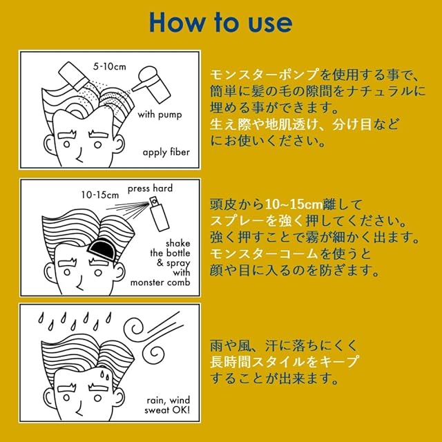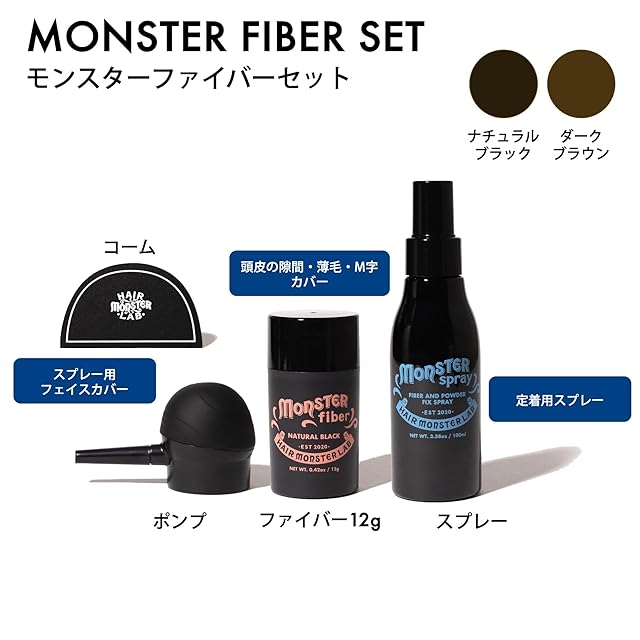 セット内容:モンスターファイバー(12g)1本・専用ポンプ1個・モンスタースプレー1本・モンスターコーム1個