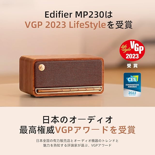 商品名:Edifier MP230 スピーカー Bluetooth スピーカー 木製 ワイヤレス 小型 16時間音楽再生 TFカード Type-C 充電式 ベースプレーヤー AUX 対応 プレゼントとして