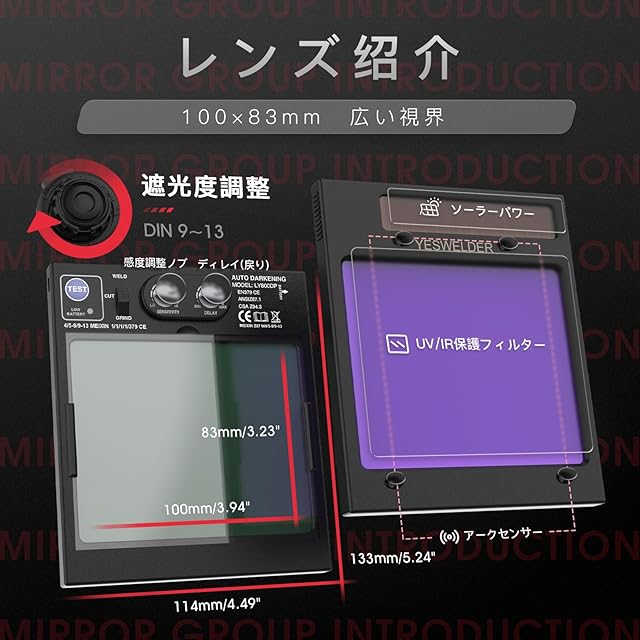 YESWELDER 溶接面 自動遮光 側面も見える広視野 4アークセンサー 遮光速度:1/30000秒 遮光度4/5-9/9-13 本当の色を映す TIG MIG ARC溶接 研磨 プラズマ切断に対応