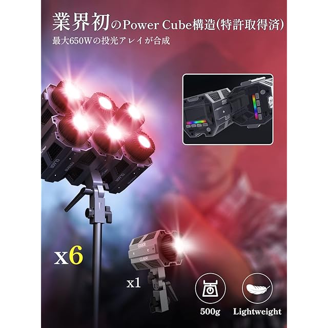 【業界で最新式のデザイン】COLBOR PowerCubeは、各COLBOR CL60をシームレスに強力なブロック照明マトリクスに構築するように設計されています。複数のCL60をスライドさせることで、最大650Wのメガパワーを生み出し、小さなポータブルCOBライトを巨大なパワーライトに変身させることができます。