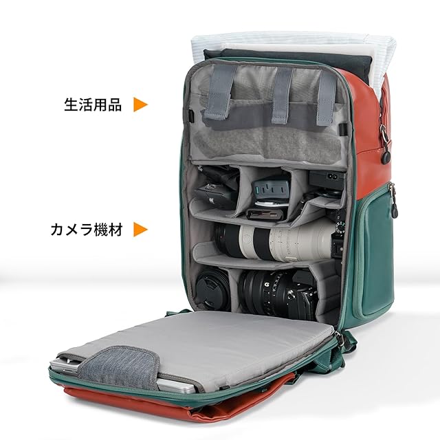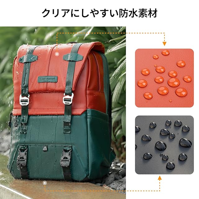 商品名:K&F Concept カメラバッグ おしゃれ カメラリュック カメラバックパック 2気室 20L 大容量 レインカバー付き 防水 一眼レフ/DSLRカメラ/レンズ/16インチPC/三脚収納可 出張/旅行/撮影用バッグ