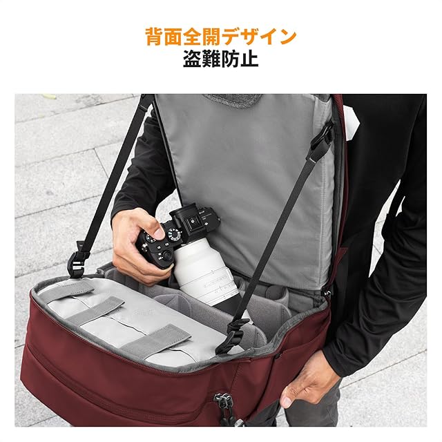 【気軽な旅行提供可能】背中のパッドやショルダーハーネス、ヒップベルトはどれも丈夫でしっかりした作りになっており、背負うとかなり楽に感じます。体への負担も小さいので長距離の移動にカメラを携帯する時に便利です。長所は機材の出し入れのしやすさ、レンズをスムーズに交換できることです。シャッターチャンスを逃したくない方はこのカメラバッグ を選ぶことをおすすめします。※ご注意:仕切り板部分はアップグレードされたものです、3折り仕切りのバッグを受け取りましたら、ご遠慮なくこちらに連絡してください。