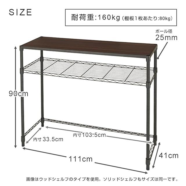 耐荷重:(全体)約160kg、(棚板1枚)ソリッドシェルフ:約80kg