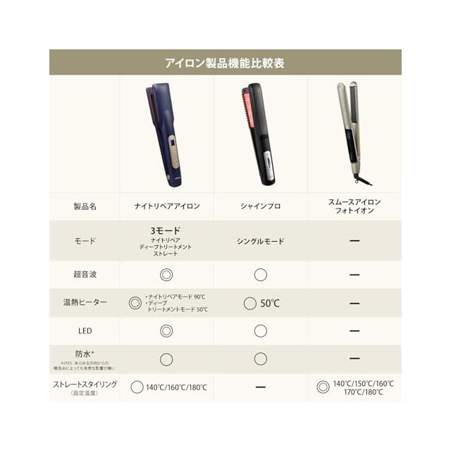 YA-MAN シャインプロ / HC21B(ブラック)、HC21G(グレージュ) / サイズ:約250×45×40mm(本体のみ) / 重量:約260g / セット内容:本体、ACアダプター、ストラップ、取扱説明書(書付) / 定格:DC9V 1A、消費電力:約3W、 / 製造国:中国