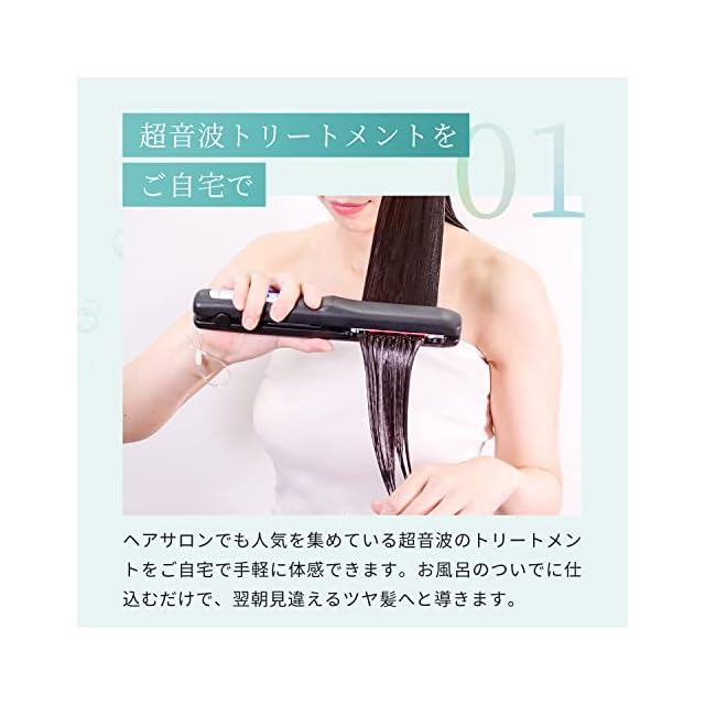 温熱ヒーターで髪をじんわりと温めながら、1MHz (毎秒 約100万回) の超音波浸透で、トリートメント剤の成分を髪内部へ叩き込みます。