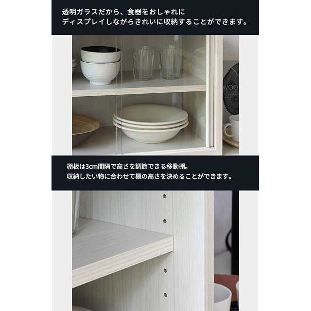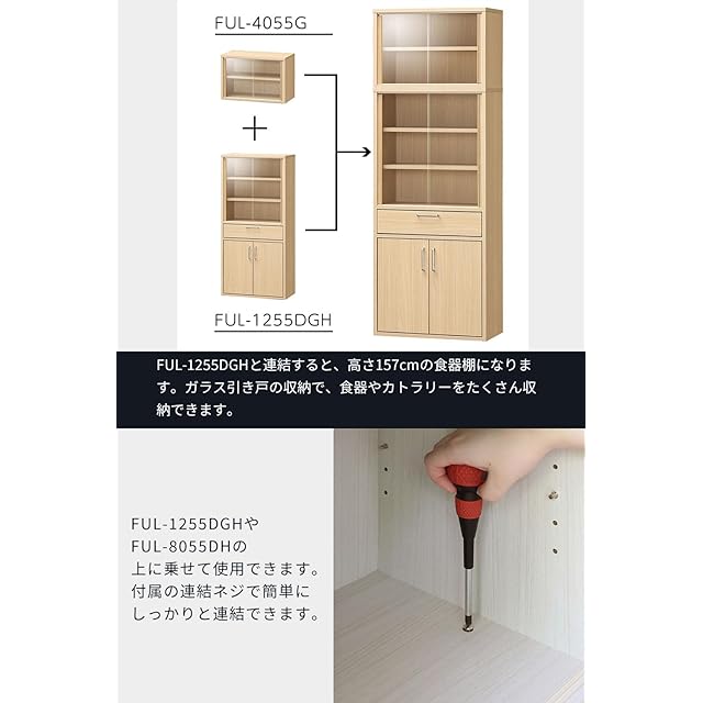 【商品説明】シンプルであきのこないナチュラルな木目柄のフルニコシリーズ。FUL-4055G WHは一人暮らしにピッタリなキッチン収納 ラック ミニ食器棚。