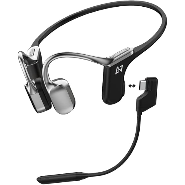 AVIOT WB-E1M 骨伝導 ヘッドセット ブルブームマイク同梱 ランニング イヤホン こつでんどう 耳を塞がないイヤホン BAドライバー搭載 bluetooth 5.2 IPX5防水 タイプc充電 12時間 長時間再生 マルチポイント対応 (シルバー)