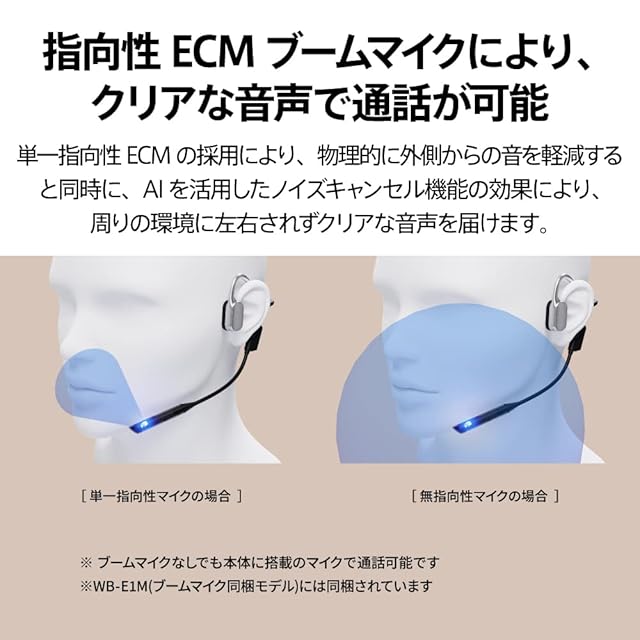 取り外し可能なブームマイク:指向性ECMとAIノイズキャンセルで外部音をカットし、クリアな音声を実現。音楽やスポーツ時はマイクを外しことも可能です。