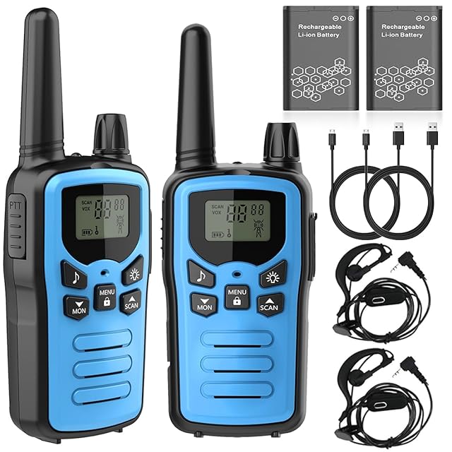 実用的な機能: これトランシーバーセットはVOXハンドフリー機能付き、LED懐中電灯内蔵、耐久性、クリスタルサウンド、自動省電力、ローバッテリーアラーム、オートスキャンチャンネル. 同じチャンネルに設定すると、複数人での通話が可能です、 USB充電機能コスト、環境保護を節約、でき充電機器を見つけるのは簡単です。