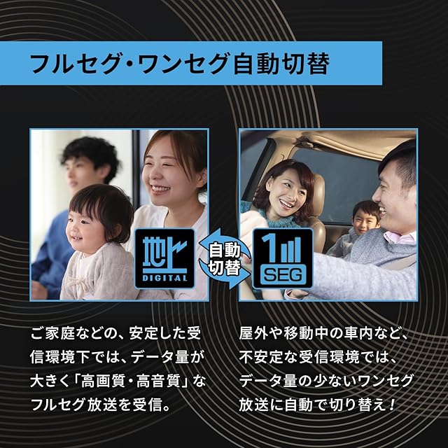 [録画機能] 外付けHDDまたはUSBで録画可能 (フルセグ1GBあたり約10分録画)※メモリー、HDDは別売り