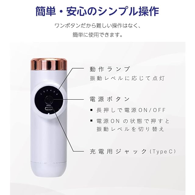 【コンパクトなのにパワフル刺激】約435gと小柄な本体ながら、最大2,800回/分のパワフルな振動がカラダの奥深くまでアプローチ。全身ケアでいつでもスッキリしたカラダで過ごせます。