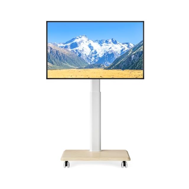 Rfiver テレビスタンドホワイト 壁寄せテレビスタンド キャスター付き tvスタンド 27~65インチ対応 テレビ台 移動式 ラック回転 高さ調整可能 木製ベース 耐荷重40 kg VESA400x400まで 業務用 展示用 家用 木目調 白