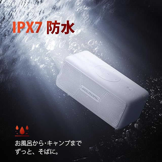 【完全防水IPX7】M5は防水スピーカーでは珍しいIPX7防水設計を採用。完全防水なので、1メートルの水中の中に三十分間入れても影響ありません。もちろん、海やプールなどのアウトドア、お風呂場での利用も心配ありません。水がある環境で、どこでも音楽を楽しんで利用できます。