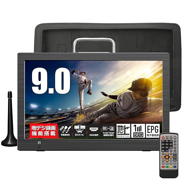 [東京Deco] 9型 ポータブル 液晶テレビ 地デジ 9.0型 録画機能搭載 車載用バック [録画機能/HDMI搭載/3電源方式/3スタイル置き/フルセグワンワグ自動切替] フルセグ アンテナケーブル 壁掛け 地デジ ワンセグ ポータブル RCA TV 9 10 o000