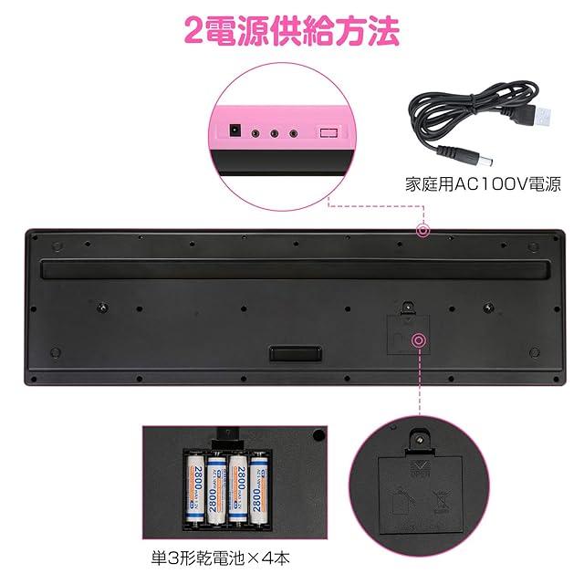 商品名:Hricane キーボード ピアノ 電子ピアノ 61鍵盤 200種類音色 200種類リズム 60曲デモ曲 LCDディスプレイ搭載 光る鍵盤 楽器 日本語パネル ヘッドフォン対応 子供 初心者 練習用 USBケーブルと日本語説明書付き (ピンク色H663)