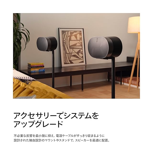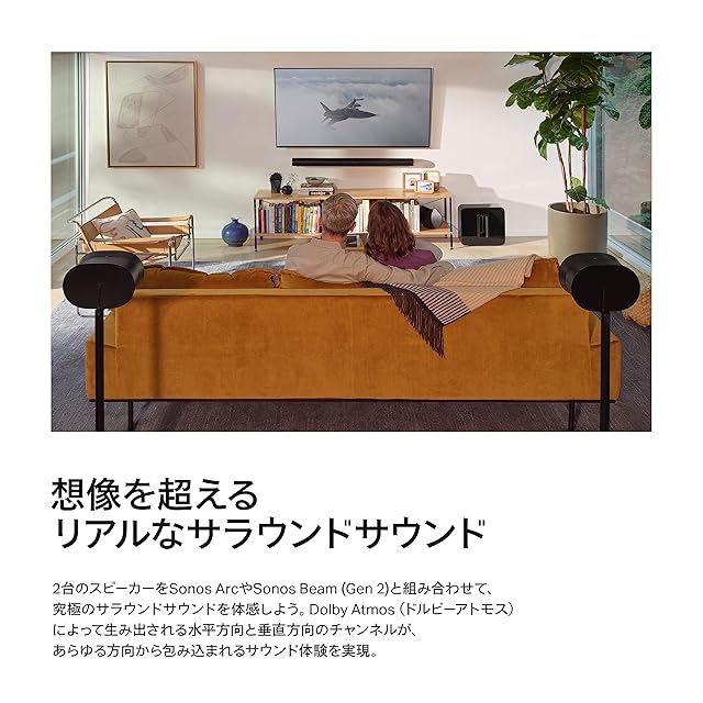 【想像を超えるサラウンドサウンド】高度なマルチチャンネル再生を可能にするSonos Era 300をSonos ArcやSonos Beam (Gen 2) と組み合わせれ ば、究極のDolby Atmos(ドルビーアトモス)ホームシアター体験を実現できます。 【音楽界のリーダーたちとの世界的なコラボレーション】Sonosサウンドは、世界の音楽シーンを牽引するアーティストやクリエーターたちとの緻密な 共同作業によって創られています。アーティストがスタジオで意図した「あるべきサウンド」をそのまま体験できるように、精緻なチューニングが施さ れた。それがSonos Era 300です。AndroidとiOSの両方に対応したTrueplayは、Sonosアプリの簡単なタップ操作によって個々に異なるお部屋の 音響特性に合わせて最適な音響補正をおこないます。
